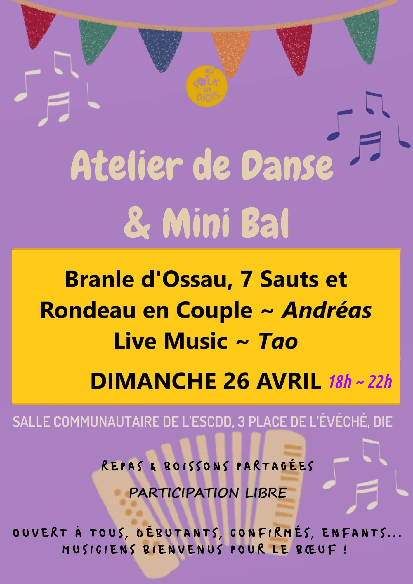 Atelier & Mini Bal 26 Avril 2026 – 18~22h