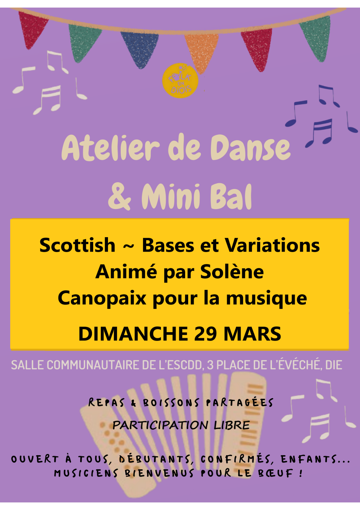 3 ateliers sont prévus chaque mois de Janvier à Avril 2026. Les ateliers se déroulent à partir de 18h à l’ESCDD, 3 place de l’Évêché à Die.