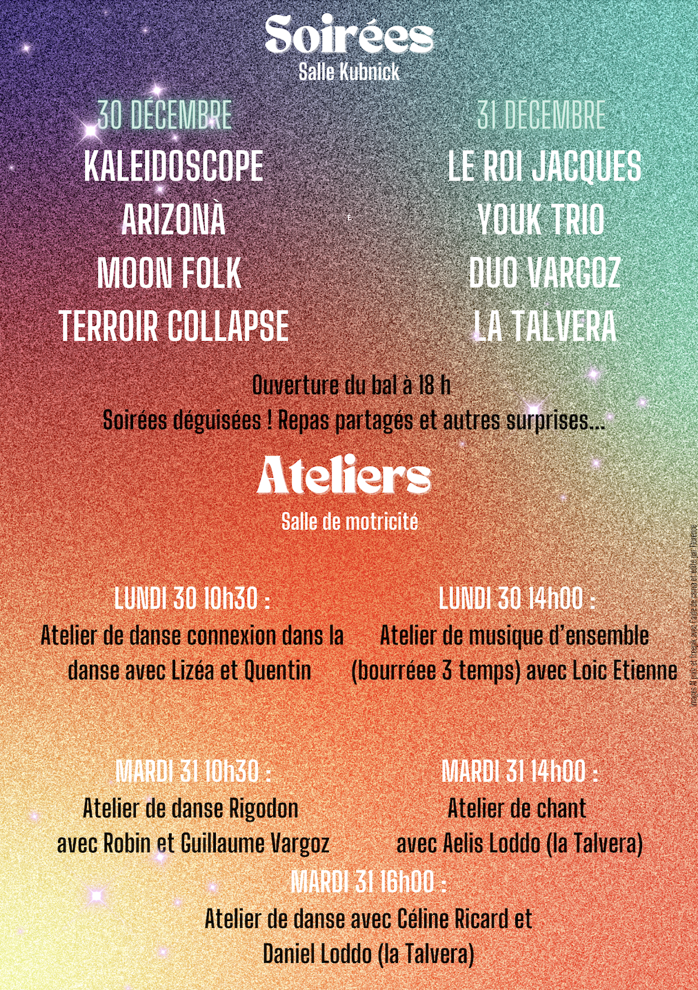 Le réveillon – Stages, bals de journée…
