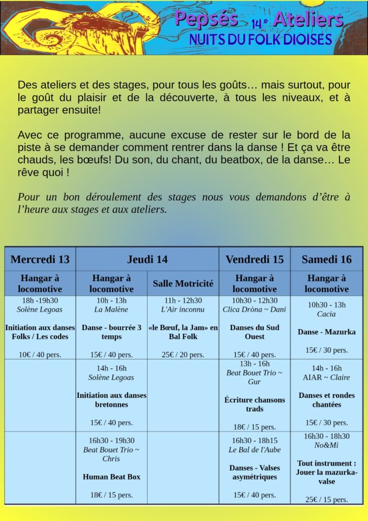 Une dernière chose… Pour des histoires d’assurances, on a besoin de votre adhésion à l’asso Folk en Diois, au tarif minimum d’1€.